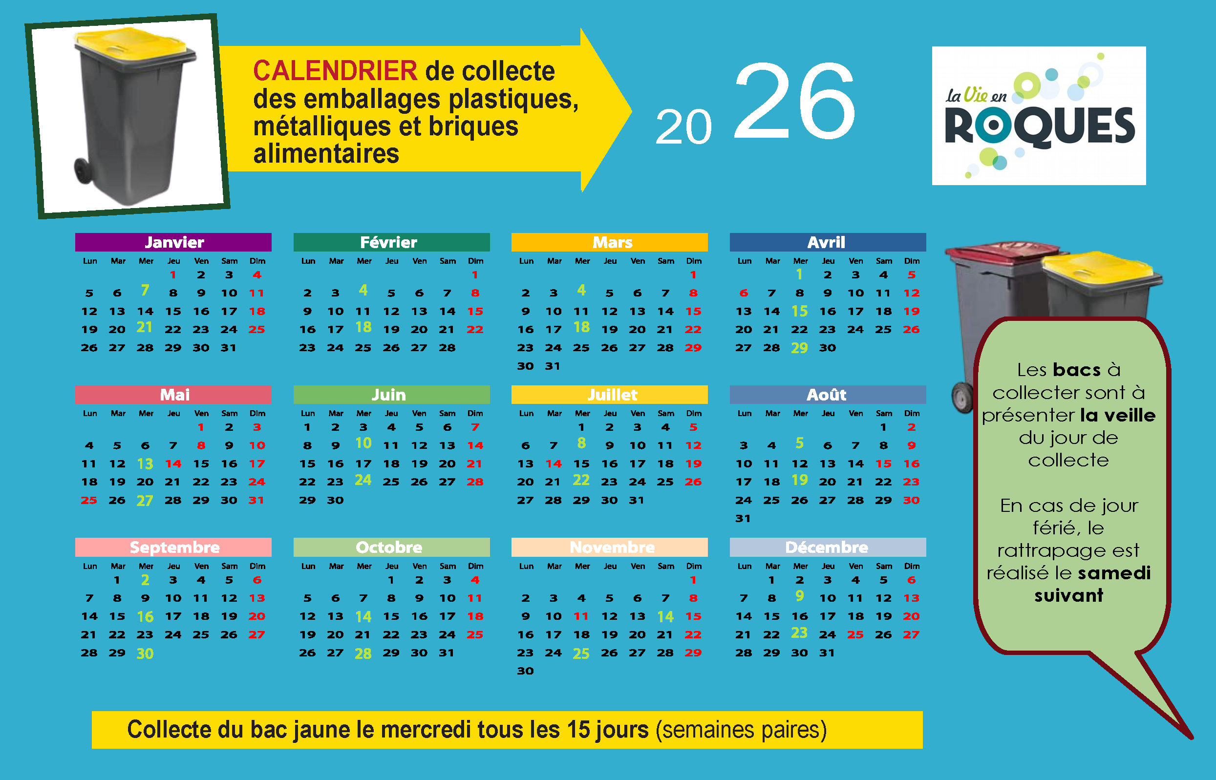• Tous les emballages plastiques, métalliques et les briques alimentaires qui sont à déposer dans le bac jaune