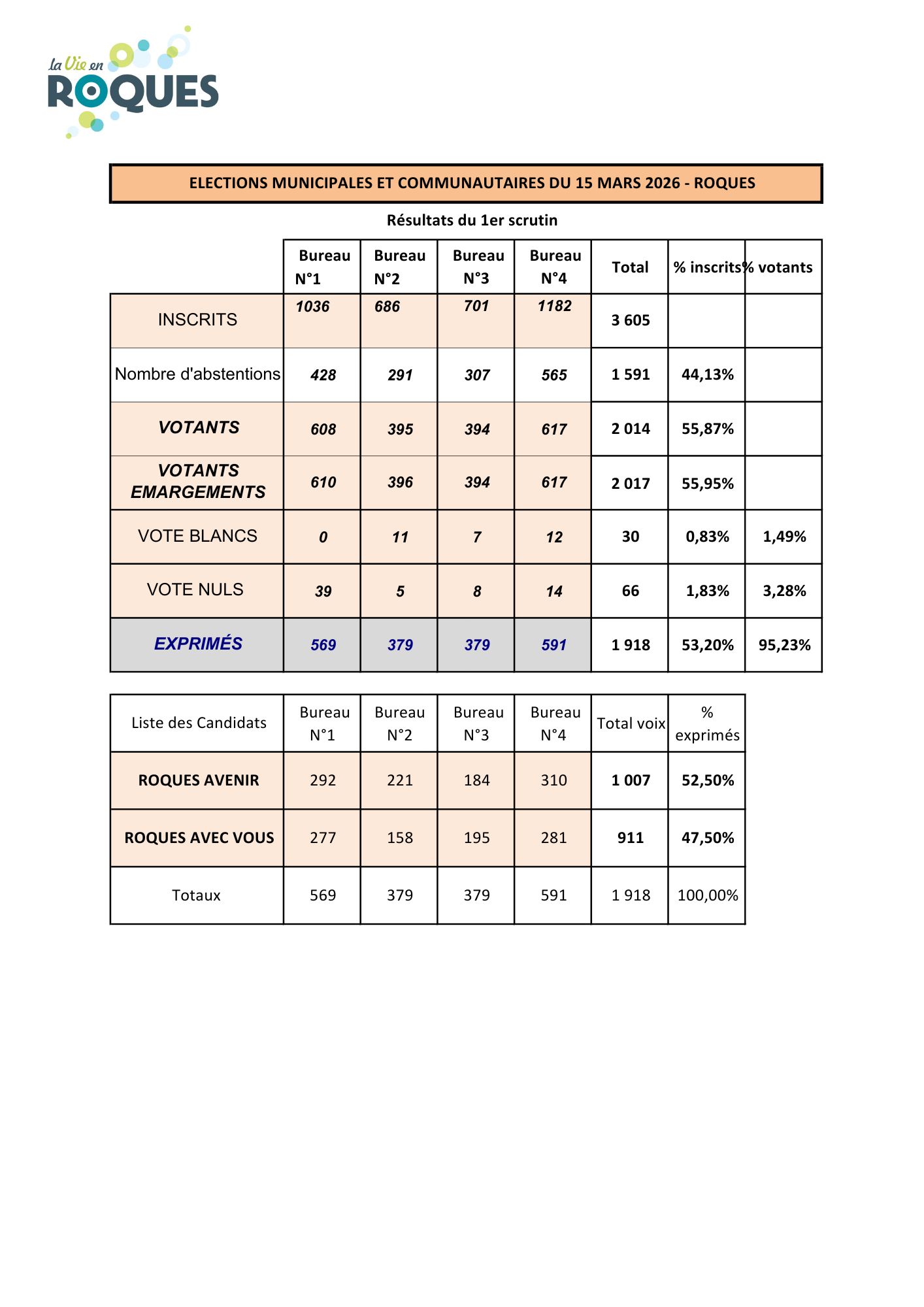 Retrouvez ci-dessous tous les résultats par bureau de vote.